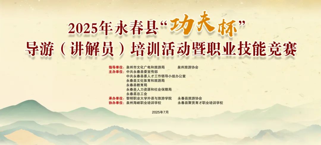 此次活动由泉州市文化广电和旅游局、泉州旅游协会指导,中共永春县委宣传部、中共永春县委人才工作领导小组办公室、永春县文化体育和旅游局、永春县教育局、永春县人力资源和社会保障局、永春县总工会联合主办。