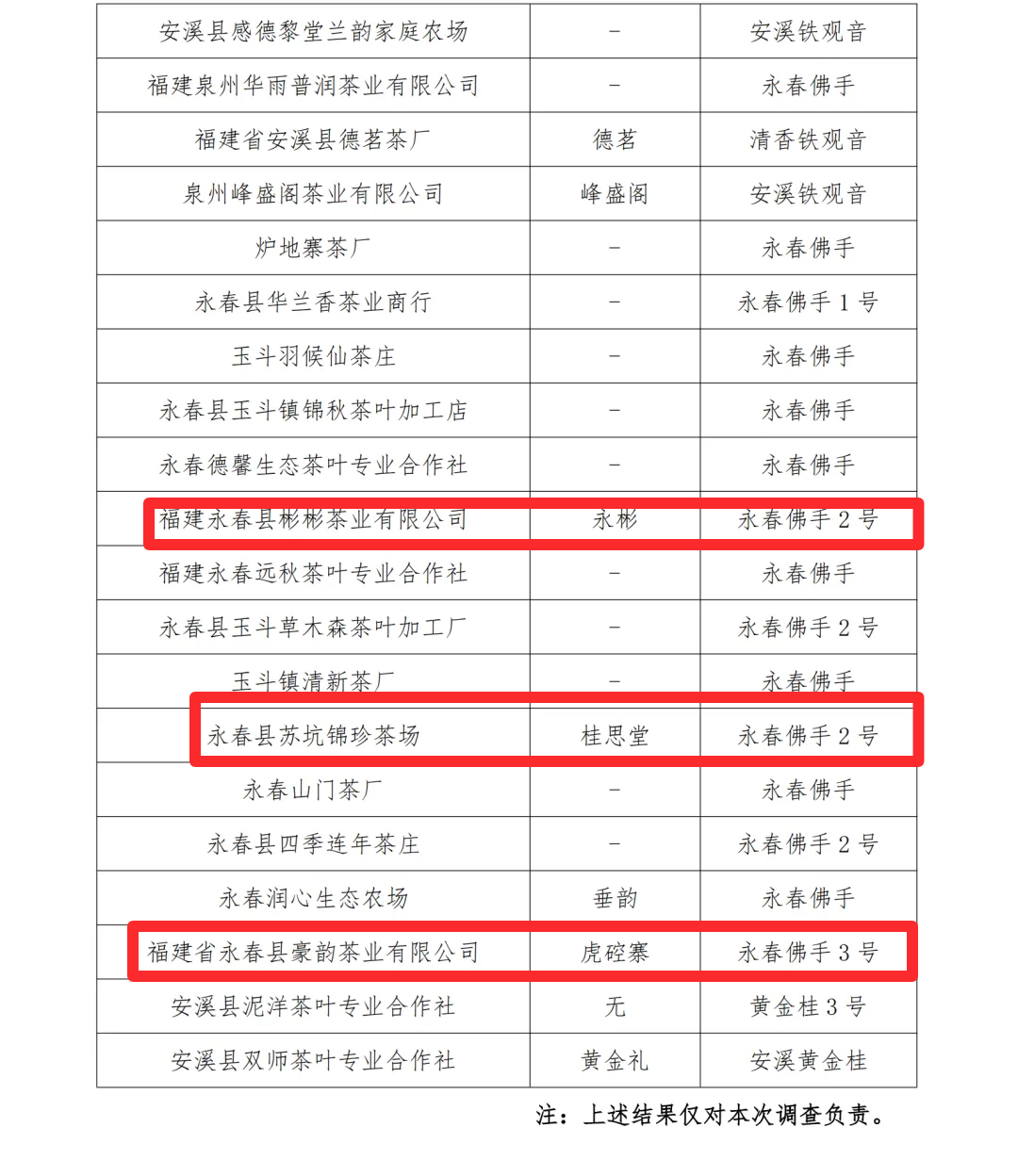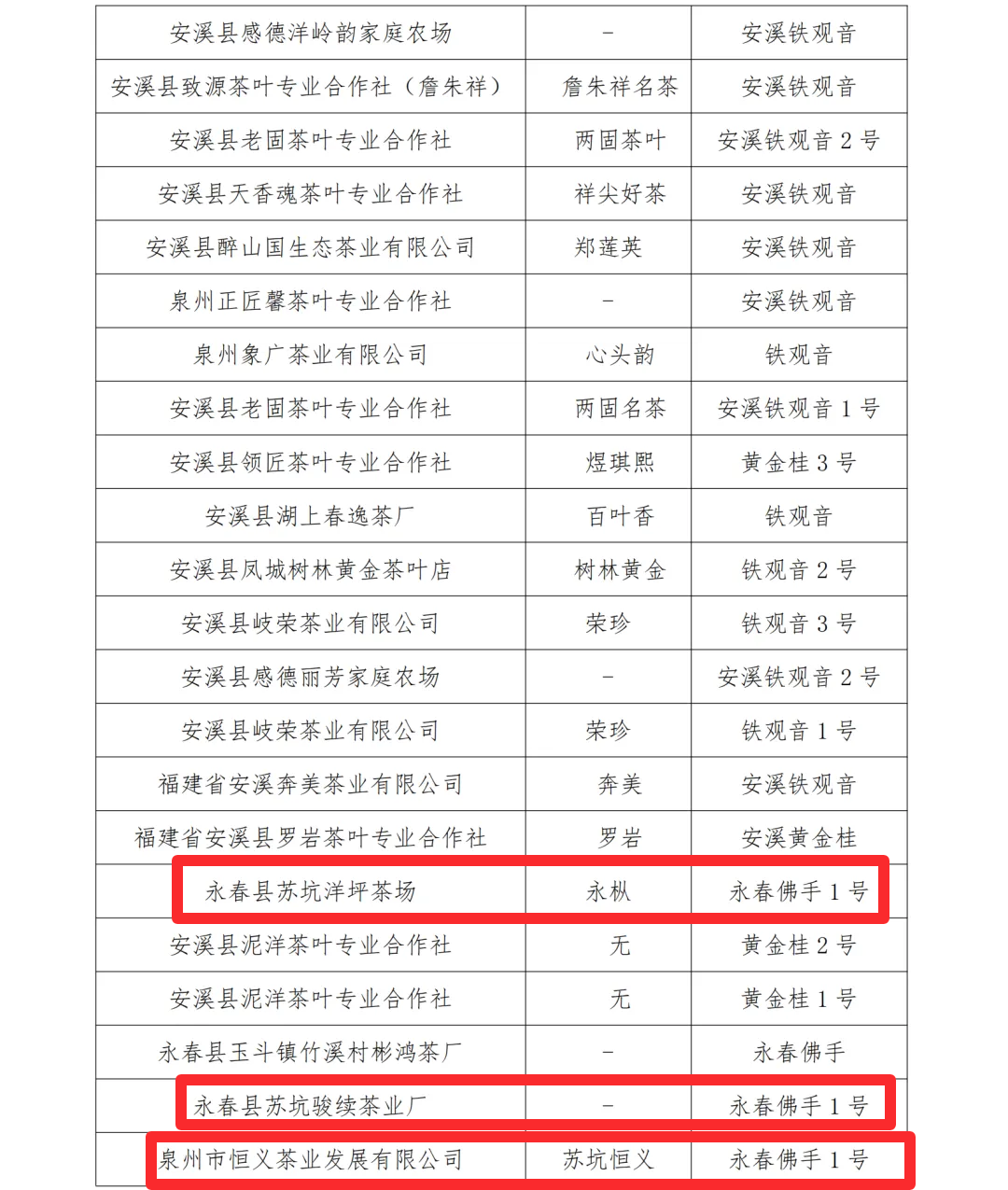 其中,来自永春县苏坑洋坪茶场2个茶样、永春县苏坑骏缘茶业厂2个茶样、泉州市恒义茶业发展有限公司2个茶样、福建省永春县豪韵茶业有限公司1个茶样,合计7个茶样被中国茶叶流通协会授予“海丝茶韵 品质泉州”四星茶品称号;来自福建永春县彬彬茶业有限公司2个茶样、泉州永春春莲茶叶专业合作社1个茶样、永春县苏坑洋坪茶场1个茶样、永春县苏坑锦珍茶场1个茶样、福建省永春县豪韵茶业有限公司1个茶样合计6个茶样被中国茶叶流通协会授予“海丝茶韵 品质泉州”三星茶品称号。这些获奖企业不仅展现了苏坑镇佛手茶的高品质,也进一步提升了苏坑镇佛手茶的知名度和美誉度。