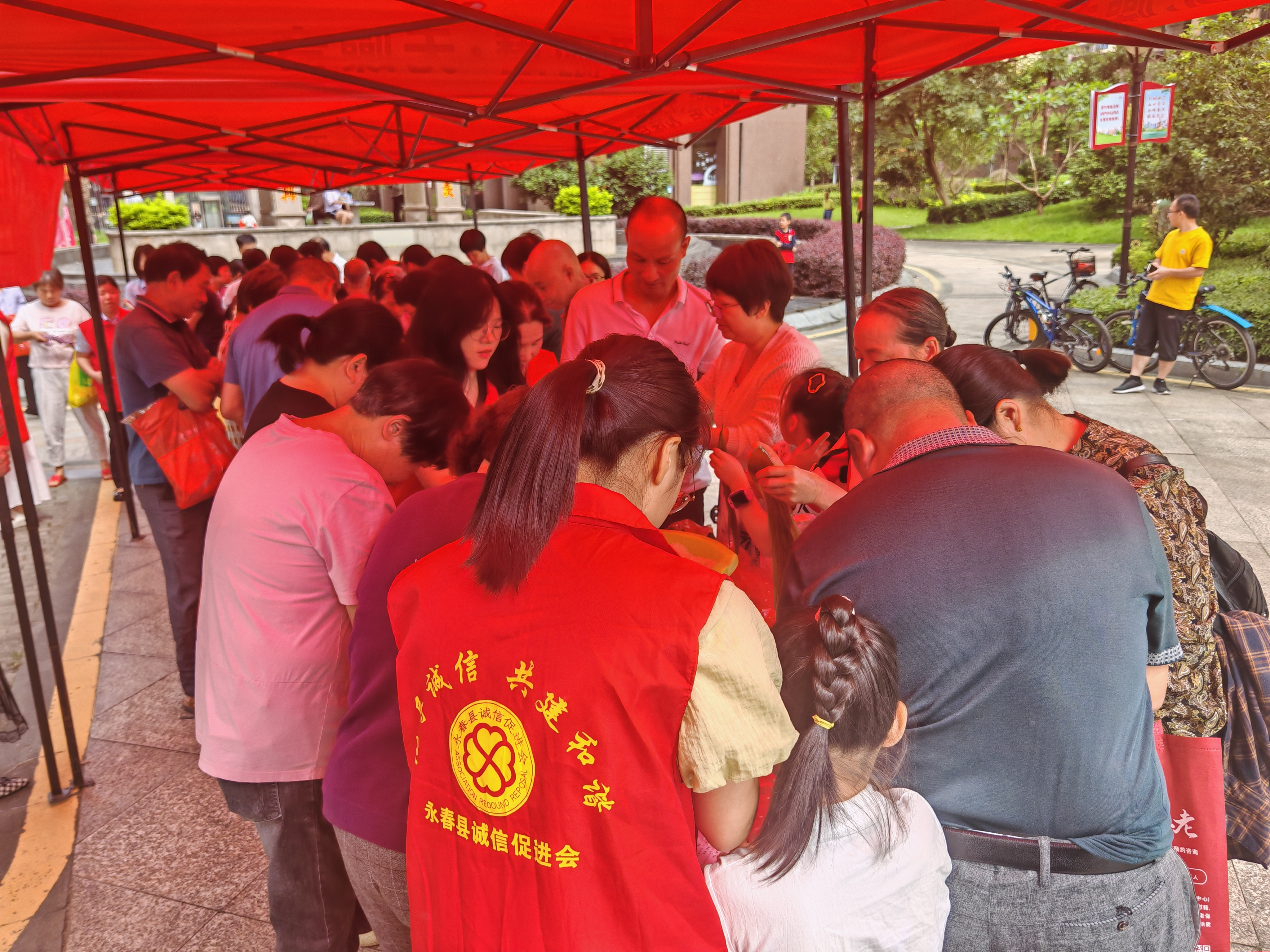 “粽香飘邻里 诚信进万家”有奖竞答活动将现场氛围推向高潮。县诚信促进会与富临国际近邻学堂精心设计30余道与端午习俗、邻里诚信相关的问答题目,涵盖“邻居借物损坏如何处理”“家庭约定未履行怎样补救”等贴近生活的场景。居民们踊跃参与,在答题过程中加深对诚信内涵的理解,现场还发放了小礼品,让诚信理念深入人心。