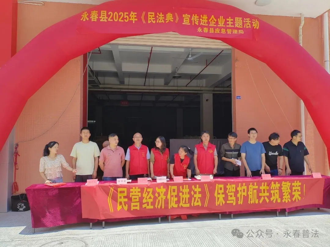 5月30日,永春县司法局联合县应急管理局、发改局、工信商务局、总工会、县法学会和工业园区管委会等单位走进永春县恒耀服装制造有限公司开展以“典助企业,诚信守法”为主题宣传活动。