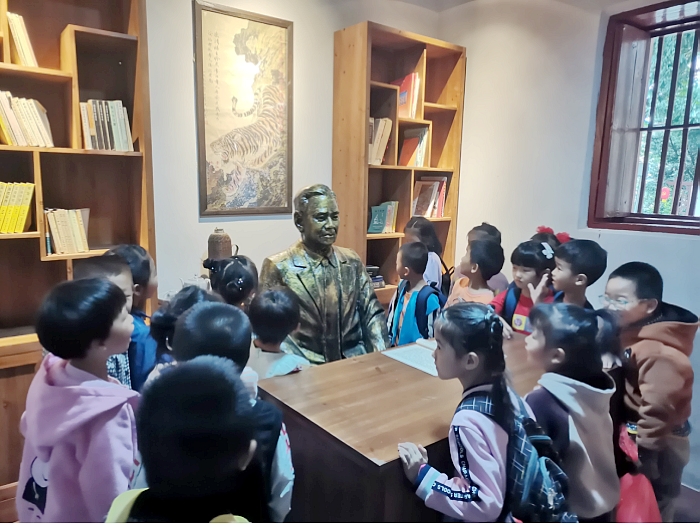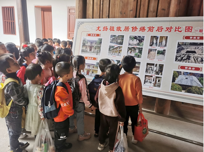 在尤先生故居门前的院子里,前峰校区负责人潘晓霞首先围绕“做一个文明的人、做一个有用的人、做一个爱国的人”做研学动员讲话,随后,孩子们以班级为单位,在潘老师的细致讲解下,有序地参观尤扬祖故居,她把对尤先生的敬佩之情,灌注在百灵般的嗓音中,向孩子们娓娓道来,让孩子们深入了解了尤先生励志、光辉的一生,同学们仿佛看到了这位支持抗战、心系家乡、兴办学校、捐建医院、兴办家乡实业,无私奉献的爱国之士,敬佩之情油然而生。参观活动在讲解中结束,孩子们意犹未尽地走出尤先生故居。接下来,师生们在院子前的空地上稍作休息,把自己带来的食品拿出来与同学、老师分享。离开前,他们自觉清理垃圾,做好院内卫生,真正做到除了脚印和记忆,没有留下任何东西。