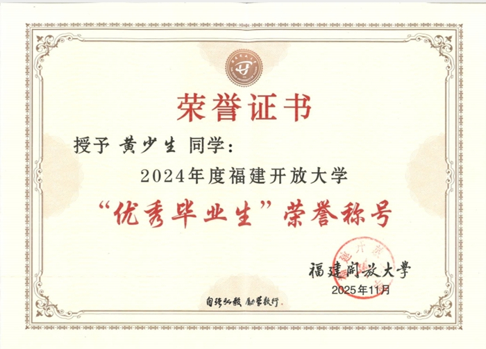 近日,2024年度福建开放大学优秀毕业生名单正式揭晓,福建开放大学永春学院学子黄少生、林志军凭借优异的学业成绩、突出的实践成效与社会担当成功上榜。
