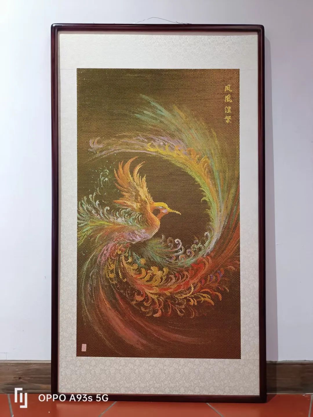 该作品以中国传统神话故事为蓝本,通过纸织画独特的艺术语言,生动地展现了凤凰在烈火中重生的壮丽场景。画面中,凤凰的羽毛鲜艳夺目,形态栩栩如生,仿佛即将振翅高飞。整幅作品色彩浓郁,层次分明,既体现了纸织画的朦胧美感,又展现出强烈的视觉冲击力。在编织过程中,方碧双巧妙地运用不同颜色的纸条进行交织,使凤凰的形象更加立体生动,同时也赋予了作品更深层次的文化内涵。在展览现场,吸引了众多观众的目光,意大利民众对这幅充满神秘东方色彩的作品表现出了浓厚的兴趣,纷纷驻足欣赏,仔细品味纸织画独特的工艺和艺术魅力。