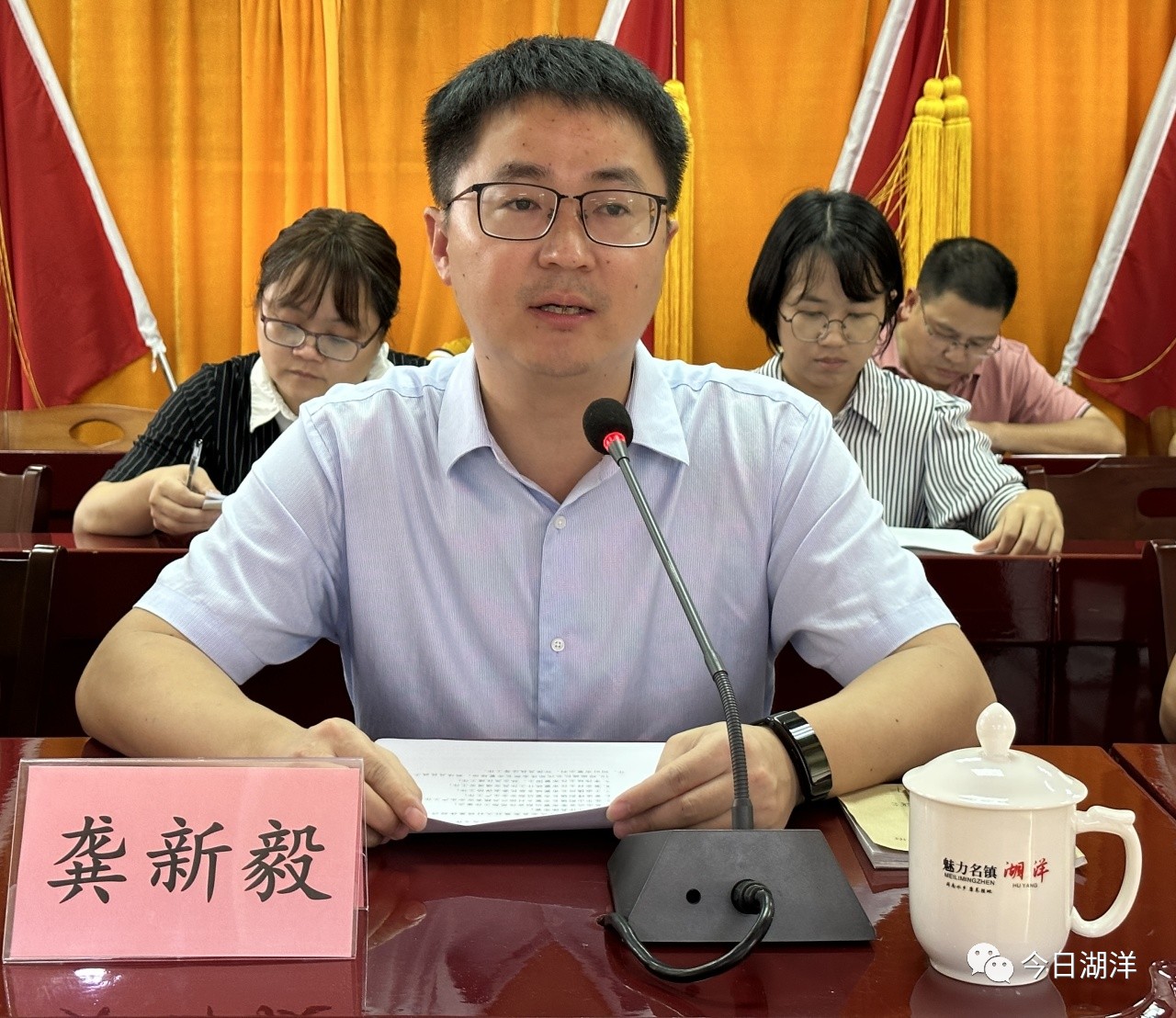9月12日,湖洋镇召开全镇工作会议,贯彻落实上级会议精神,总结近期全镇工作开展成效,部署下一阶段工作任务,进一步明确目标、增强信心、鼓舞干劲、再加压力、再出实招,推动湖洋各项工作再上新台阶。会议由镇长龚新毅主持,镇全体干部职工、各村书记、各村土地协管员参加会议。