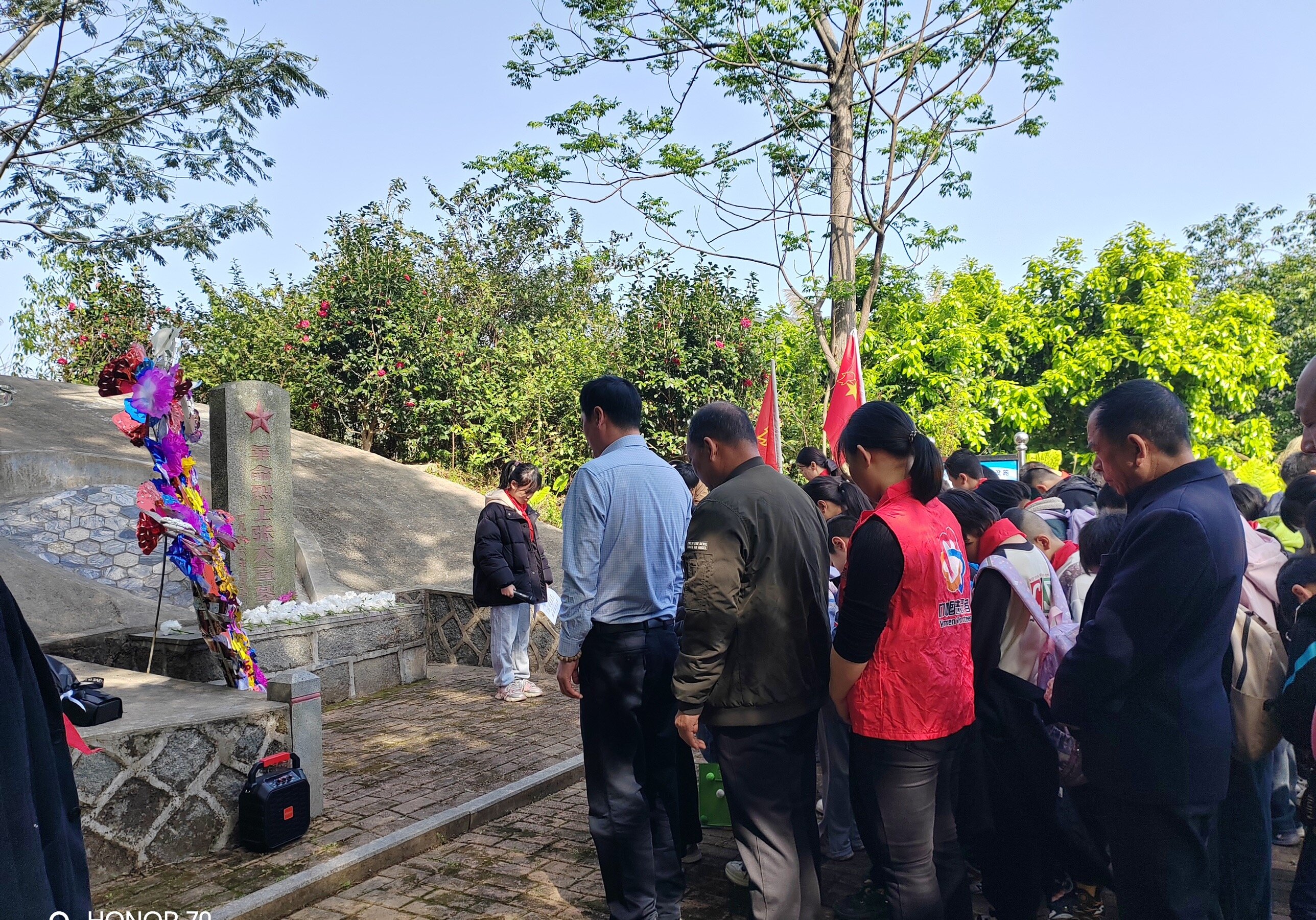 为深切缅怀革命先烈的丰功伟绩,弘扬爱国主义精神,激励广大党员和青少年赓续红色血脉,4月3日上午,吾西村“党建+”邻里中心组织辖区党员代表、学生代表等30余人前往张大宣烈士墓,开展清明节祭扫活动,以庄严仪式寄托哀思,从革命历史中汲取奋进力量。在庄严肃穆的烈士纪念碑前,全体人员整齐列队,通过敬献花篮、集体默哀、瞻仰烈士墓等方式表达对革命先烈的深切缅怀。吾西村党委书记张国才现场讲述了张大宣烈士的英雄事迹,带领大家重温革命年代艰苦卓绝的奋斗历程,感悟先烈们为民族独立和人民解放事业英勇献身的崇高精神。学生代表随后进行献词,以《致先烈的一封信》抒发了新时代青少年继承遗志、报效祖国的坚定信念。通过沉浸式教育引导党员和学生厚植家国情怀,筑牢理想信念之基。