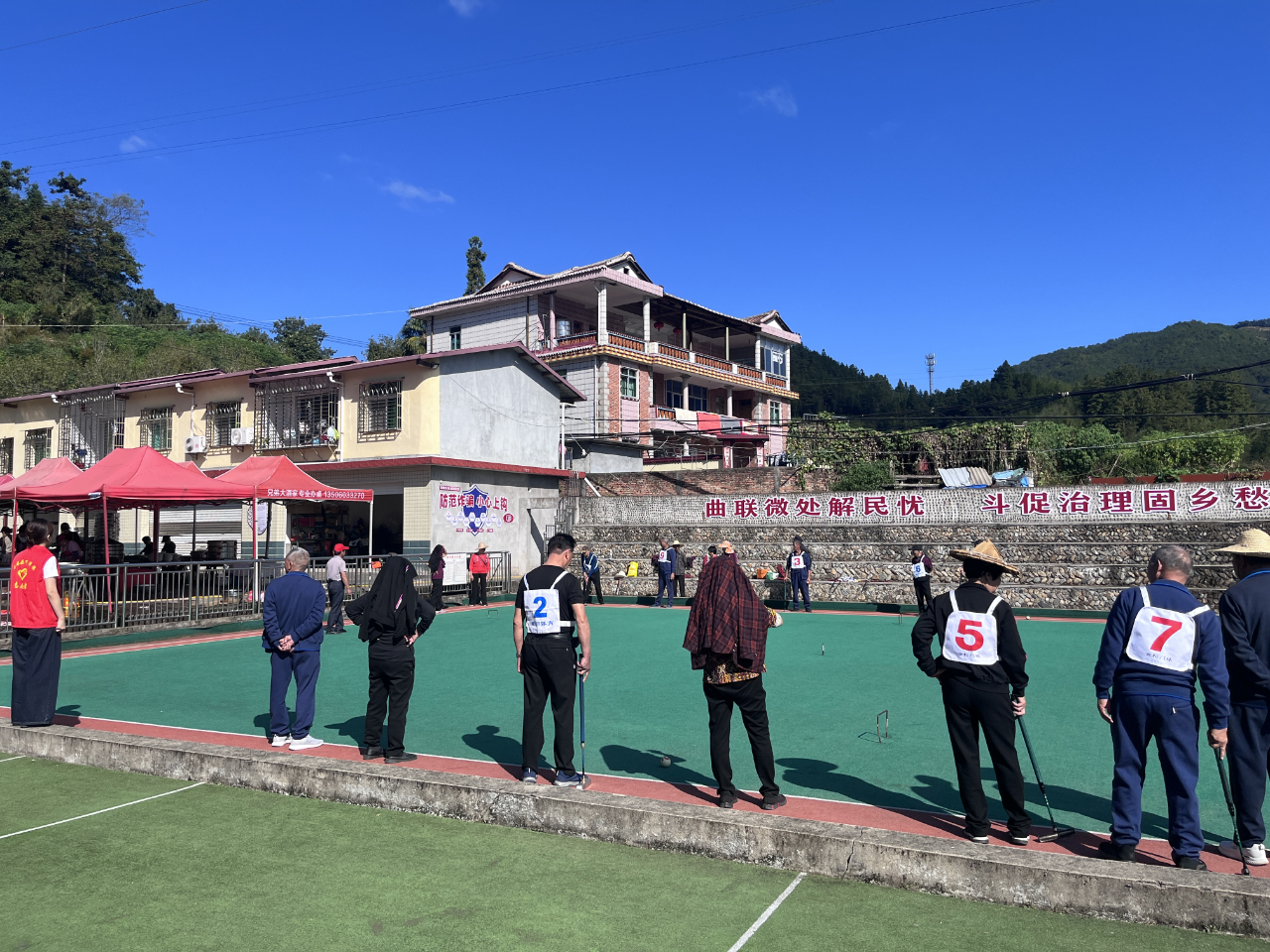 活动现场设置了门球和棋牌两个比赛区域。门球场上,老人们手握球杆,瞄准、击球,动作娴熟又专注,队友间还会互相加油打气;棋牌室里,象棋比赛同步进行,大家围坐一桌,在轻松的博弈中交流技巧,输赢都化作了满室的欢声笑语,尽显 “老有所乐” 的惬意。