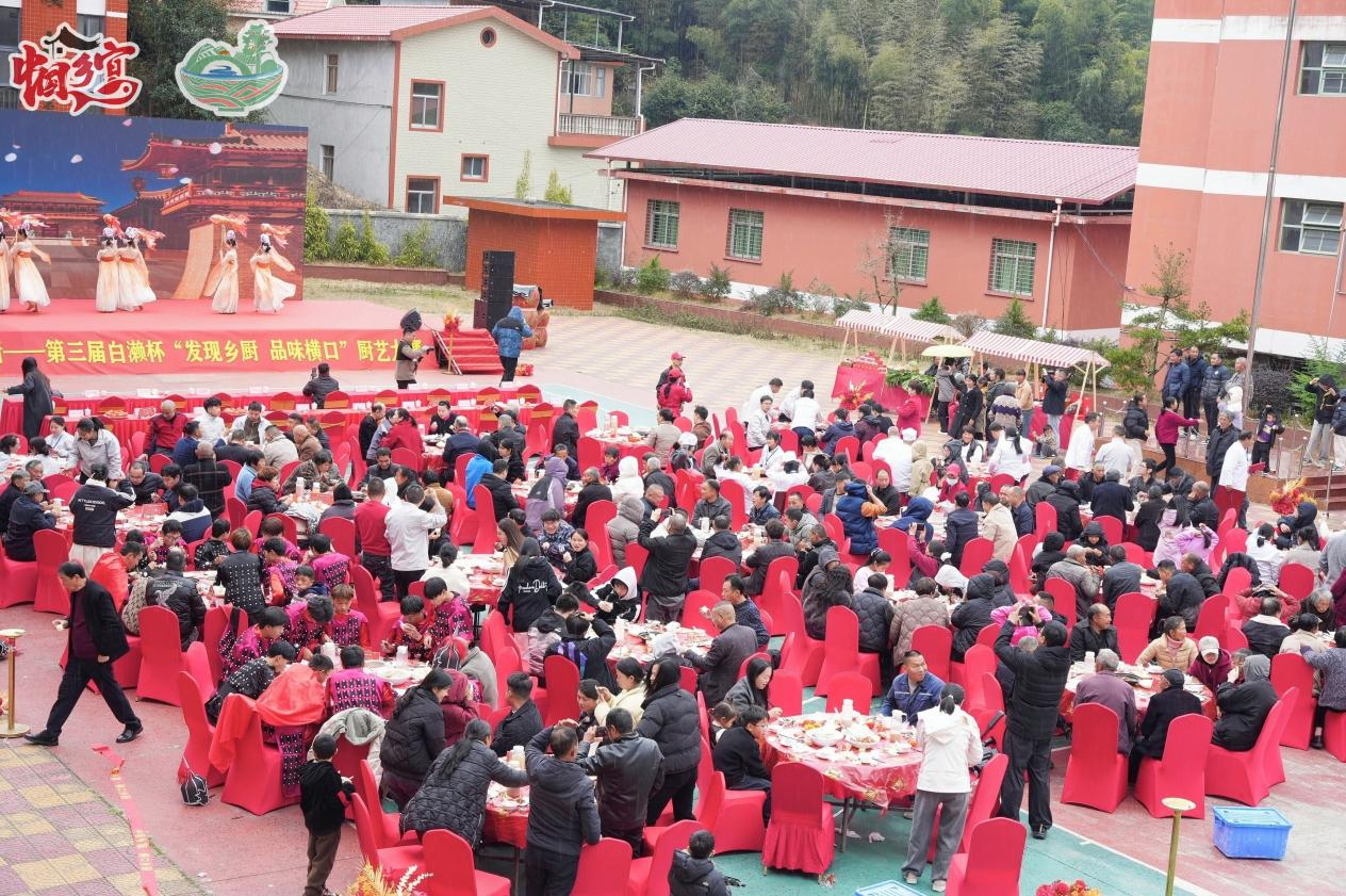 上午进行的“白濑杯”厨艺大赛,聚焦“养生”主题,吸引了本地众多乡厨同台竞技。比赛采用开放式厨房与专业评审相结合的方式,最终评选出一、二、三等奖及优秀奖共11名。大赛不仅展现了乡厨们精湛的技艺,也凸显了横口本地冬笋、茶油等高山食材的健康价值。