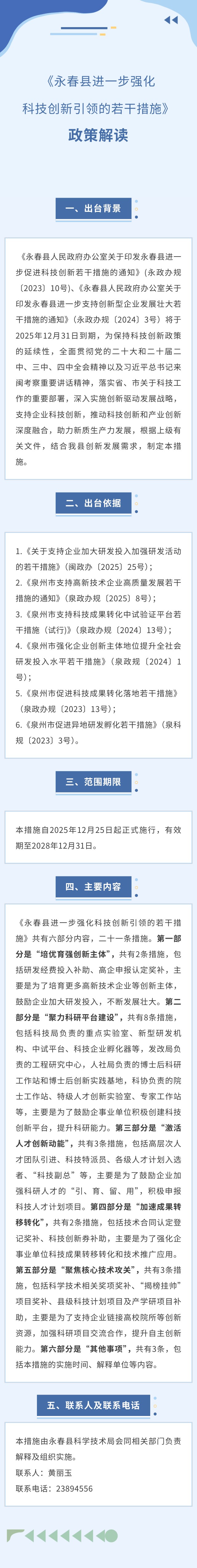 一图读懂《永春县进一步强化科技创新引领的若干措施》