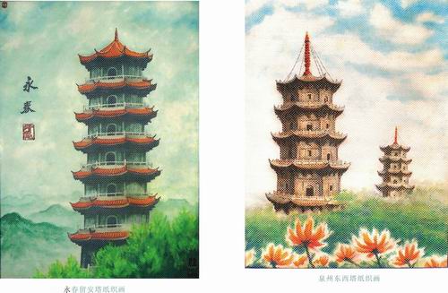 永春纸织画是闽南侨乡永春县独有的民间传统手工艺品。与杭州丝织书、苏州缂丝画、四川竹帘画并称为中国的四大家织。纸织画把一幅中国画用特制的利刀,切成宽仅2毫米、头尾不断、细长的纸丝作为经线,用与经线一样宽的纯白宣纸丝作纬线,再像织布一样放在特制的纸织机上穿梭交织,然后裱背成画。这样一来,除保持中国画特具的品格之外,还多了一种“雾里看花”的朦胧之美,这又是一绝。永春纸织画题材广泛,内容丰富,山水花鸟、飞禽走兽、历史人物、神话故事、民间传说应有尽有。2005年10月,被列入福建省首批非物质文化遗产代表作名录。2011年5月,被列入第三批国家级非物质文化遗产名录。