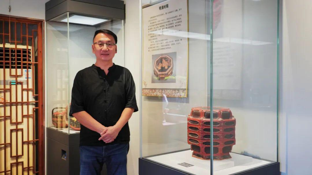 中国收藏家协会会员、永春一中梅峰书院副山长、原福建省收藏家协会古玩字画专业委员会永春县活动中心主任,从事文物收藏30余年,有闽南(永春)非遗及相关文物16个系列5000多件藏品,涵盖了文献、瓷器、漆器、书画和竹木雕刻等多个门类。其中永春漆篮是他收藏的一大门类,数量多达400多个,年代则从明清跨越至民国时期。2023年1月,清竹编八角漆盒、民国郭振盛金彩“秉灯夜读”纹扁漆篮等2件藏品在国家博物馆举办的“源·缘--闽台艺术展”展出。