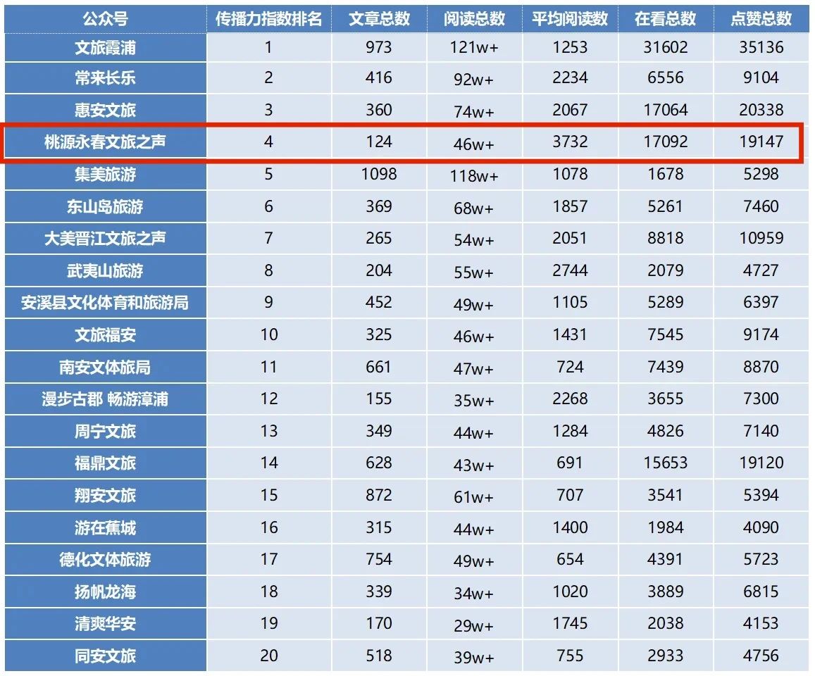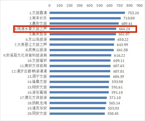 福建省各县(市、区)文化和旅游政务微信公众号年度传播力指数TOP20