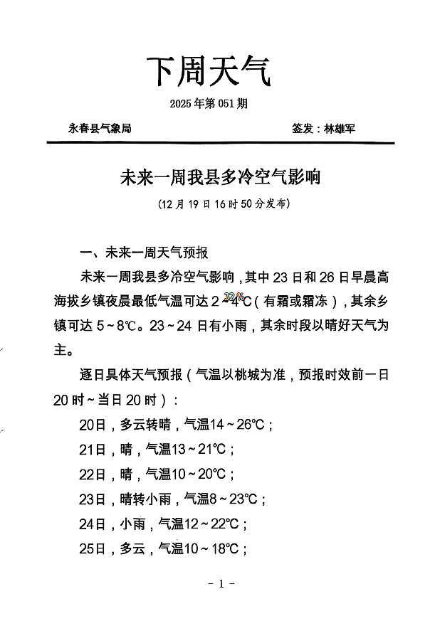 【预警信息】12月20日-26日我县将出现冷空气影响