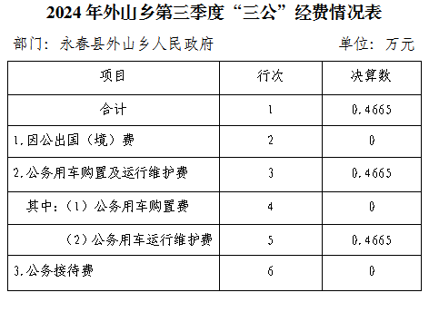 2024外山乡第三季度“三公”经费情况如下: