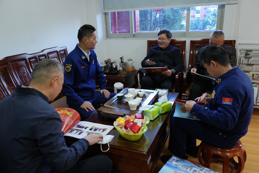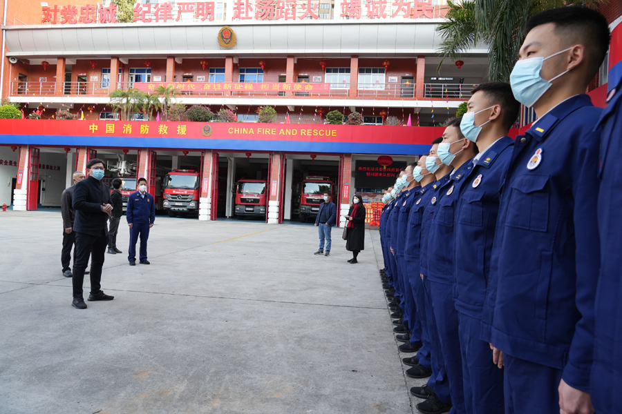 在整齐列队的欢迎队伍前,蔡常委代表县委、县政府向奋斗在消防一线的全体消防救援人员、家属致以衷心的感谢和新春的慰问,并充分肯定了县消防救援大队过去一年的工作。他指出:全体消防指战员担负着全县防火、灭火、抢险救援的艰巨任务,始终默默无闻坚守在工作岗位上,用辛苦努力换来了全县人民的平安,为全县社会和谐稳定创造了良好的消防安全环境。
