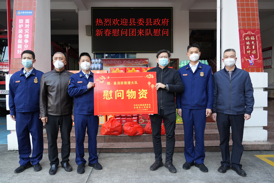 在新春佳节来临之际,1月19日上午,永春县委常委、副县长蔡映辉率春节慰问团一行来到县消防救援大队,怀揣县委、县政府及全县人民的亲切关怀,向坚守岗位,战斗在应急救援一线的全体消防救援人员,致以新春的问候和节日的祝福。