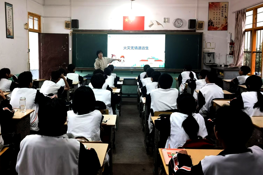 在“消防知识进课堂”活动中,一些学校班级还开展了“全民消防,生命至上”消防安全主题班会活动,各班主任对学生进行了防火教育,包括不玩火、及时清理家中杂物、电动自行车不进楼不入户等,引导同学们无论在家还是在校都要自觉加强防范,杜绝火灾隐患;有的班级通过视频播放了近年来全国学校火灾的案例,分析了学校火灾事故特点和惨重后果,通过PPT讲解,向学生介绍了校园防火、灭火的常识;有的班级通过视频向学生宣讲了常见的火场逃生技巧,学生熟练掌握火场逃生口诀。
