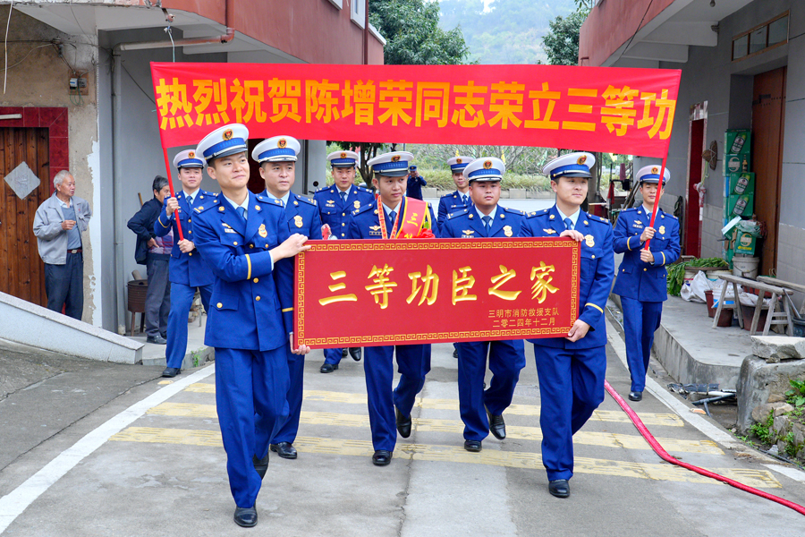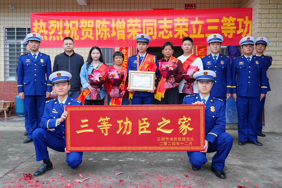 一人立功,全家光荣。3月4日上午,三明市消防救援支队会同泉州市永春县消防救援大队、东平镇政府等部门有关负责同志来到永春县东平镇鸿安村,为荣立个人三等功的陈增荣同志“送奖到家”。