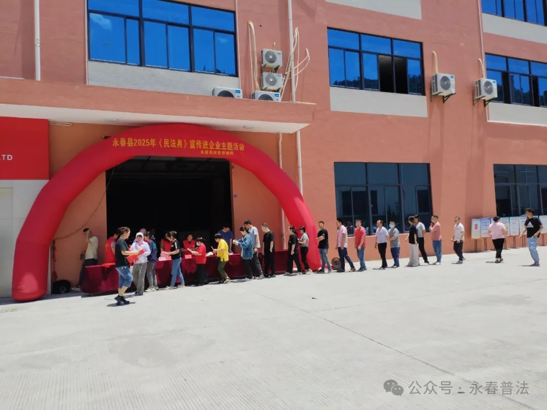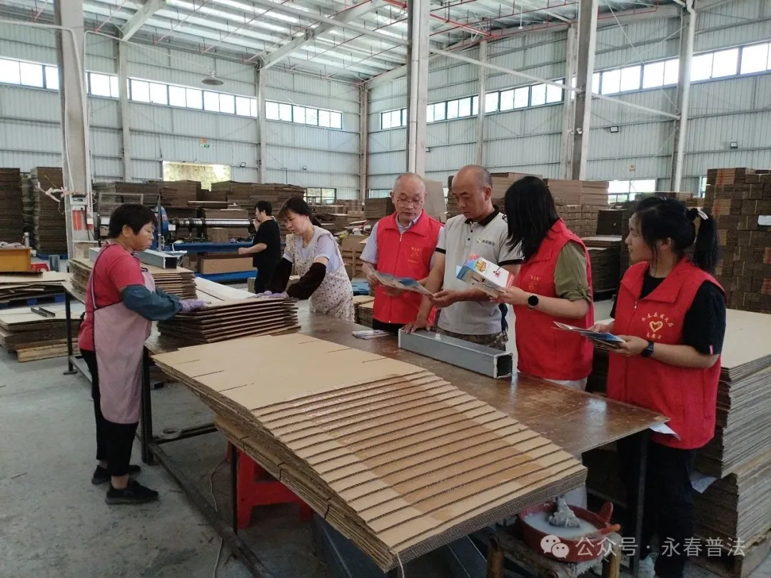 5月30日,永春县司法局联合县应急管理局、发改局、工信商务局、总工会、县法学会和工业园区管委会等单位走进永春县恒耀服装制造有限公司开展以“典助企业,诚信守法”为主题宣传活动。