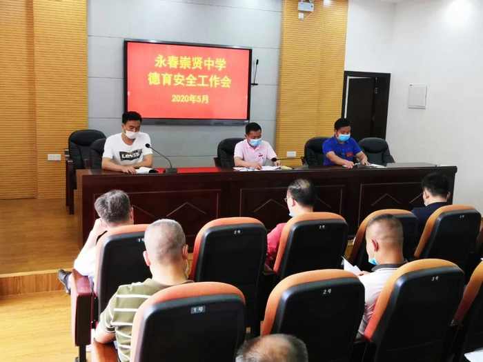 5月18日下午 ,崇贤中学召开2020年春季德育安全工作会,学校全体行政人员、年段长、班主任、保卫干部、生管老师和负责心理健康教育的老师参加会议。