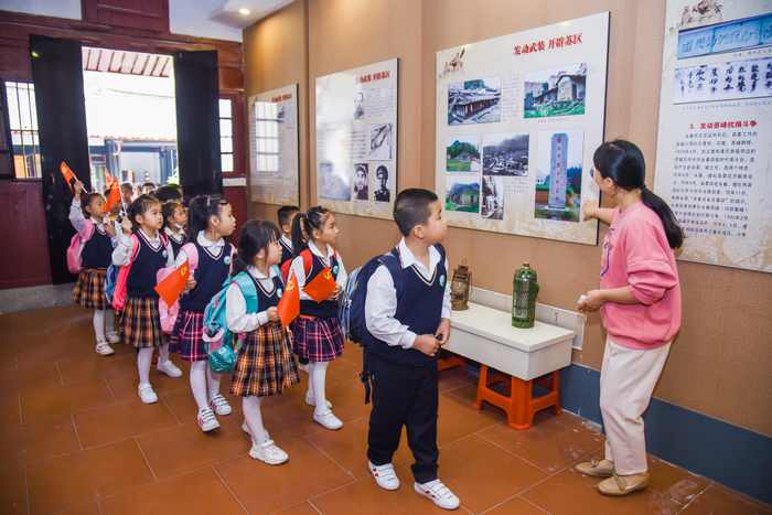 中共永春一大会址辜氏家庙在永春县五里街儒林社区,是中国共产党在永春的第一个支部、第一个特支、第一个县委的驻地,是召开永春县第一次党、团代表大会的旧址。2012年11月被中共福建省委党史研究室列为福建省党史教育基地。瞻仰革命旧址对于了解历史和牢记使命具有重要的教育和学习意义。 在讲解员大姐姐的带领下,师生们依次参观了日出东方建党大业、召开一大确定纲领、发展武装开辟苏区、坚持斗争夺取胜利、保护名祠彰显会址等四个陈列室。在讲解员的生动解说下,老师和孩子们深入了解了中共永春县支部的发展、成长历史、中共永春一大召开情况、革命前辈们的资料,缅怀了永春县革命先烈们的光辉事迹。