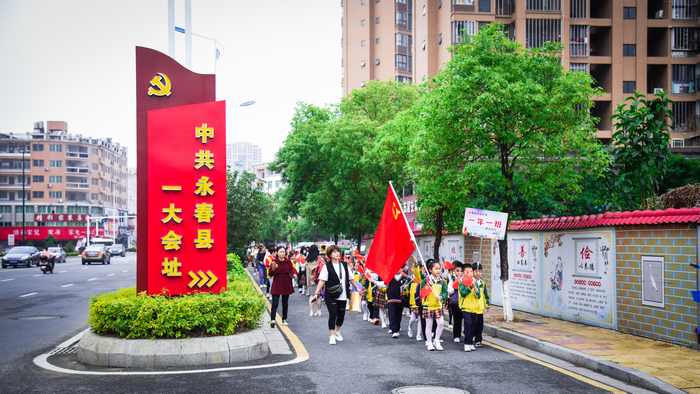为深入贯彻落实习近平总书记对党史学习教育的重要讲话精神,引导党员、教师践行初心、牢记使命,激励少年儿童红心向党,报效祖国的伟大志向。值此中国共产党成立100周年,永春县实验小学一年级全体师生开展 “童心向党迎百年,红色基因代代传”党史学习教育,组织他们到永春一大会址学党史、感党恩、和党旗合影,弘扬榜样的力量,用自己独特的方式向党的百年华诞献礼。