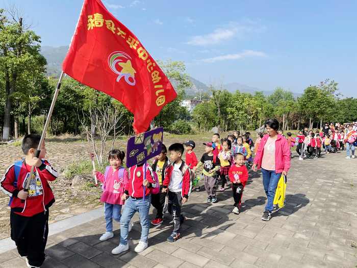 活动当天,小朋友们排着整齐的队伍在老师们的带领下,向东平镇的名胜古迹昆仑洞出发。小朋友们背着小书包,个个精神抖擞、气宇轩昂、兴致勃勃地徒步前进,一路上感受着春天的气息,观田野、赏竹林、闻花香、欣赏着如画般美丽的春天景色;当孩子们走进桃溪国家湿地公园,看到桃溪流水潺缓而过,孩子们满心欢喜,老师适时引导孩子观察桃溪国家湿地公园的环境,感知春天的美丽景色,同时教育幼儿爱护花草树木、爱护鸟类、保护水源。