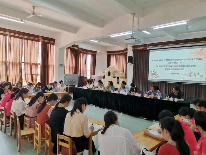 《全民阅读视角下的幼儿园绘本阅读的实践研究》是教育部福建师范大学基础教育课程研究中心2020年开放课题,是两地三园合作的课题。日前,该课题研究阶段成果展示活动在仓满幼儿园圆满举行。参加此次活动的有:永春县教师进修学校李建义副校长;福建省特级教师、省学科带头人、原泉州市园际语言教研组组长、原泉州幼师附幼郑玉华副园长;丰泽区第三实幼张煌雅园长;永春仓满幼儿园陈桂蓉园长;永春港永幼儿园郑晓燕园长;以及丰泽区第三实验幼儿园、永春仓满幼儿园和永春港永幼儿园的课题组成员及部分老师。