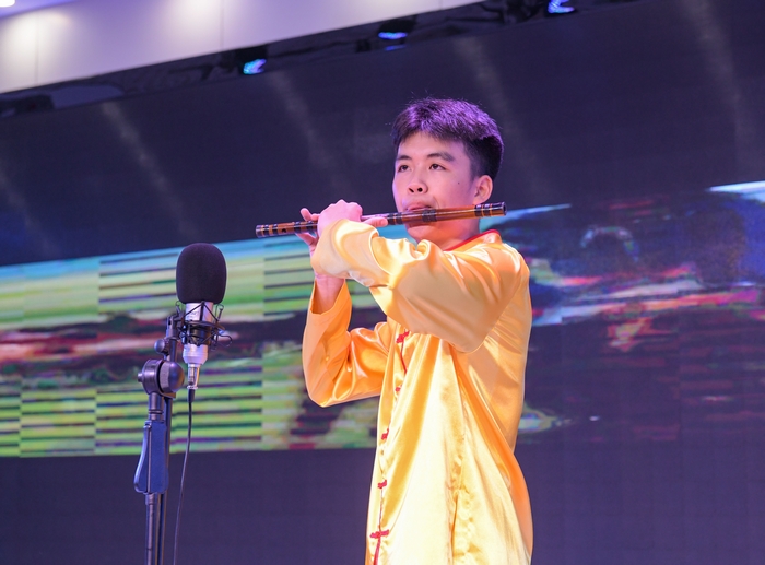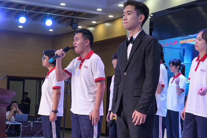 典礼中穿插的节目同样令人难忘,谢宇杭同学的笛子独奏《扬鞭催马运粮忙》激昂澎湃,潘俊毅、叶颖同学的朗诵《吹号者》深沉而磅礴,潘晨希、王珏同学的舞蹈《傣之韵》风情万种,主持人互动环节热烈欢快,合唱《少年》充满少年意气和奋斗精神。