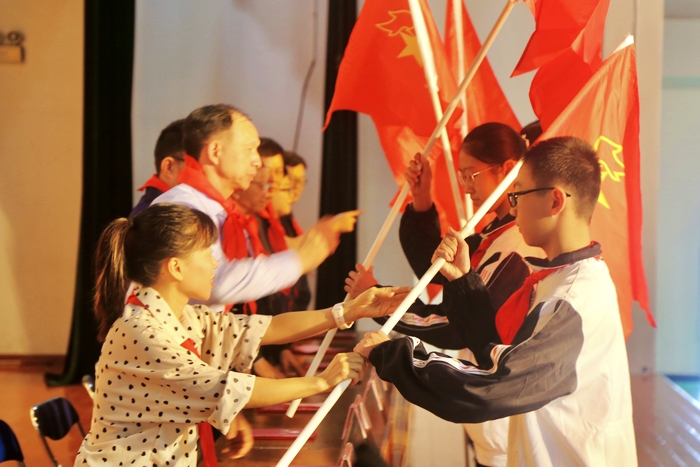 团县委书记林兰在仪式上讲话,她首先对永春一中的团队工作给以高度肯定,并鼓励少先队员们要认真学习,为班级聚力,为学校争光,要树立理想、磨练意志和增长才干,成为社会主义现代化建设的接班人,为祖国、为人民做出更多的贡献。希望少先队工作者和辅导员老师把智慧献给少先队事业,做少先队队员的亲密朋友和指导者,创新性地推进少先队工作。