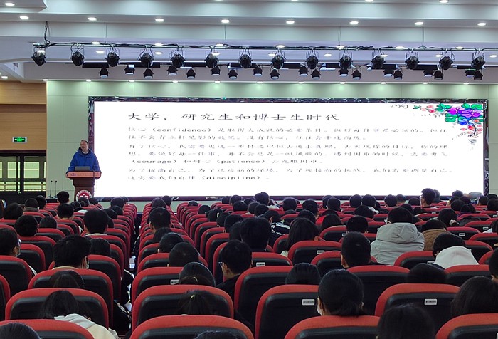 李润泽教授以《经验分享,与你共勉》为题,用心地与同学们分享了他的求学经历和工作经历:从中学到本科,从硕士到博士,求学从来没有捷径,稳扎稳打才能根深叶茂;不管是在中科院工作,还是到宾州州立大学,厚厚的成绩单源于几十年的不懈努力。李教授以自己的亲身经历告诉同学们:成功是奋斗出来的。