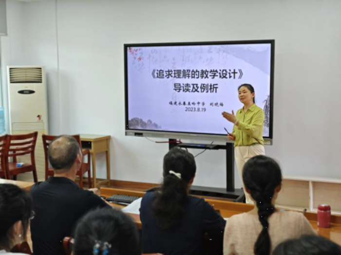 为了让大家读得更入脑入心,工作室成员、美岭中学刘晓梅老师为大家带来专题讲座《〈追求理解的教学设计〉导读及例析》。刘老师结合自己参加教育部新时代中小学学科领军教师示范性培训时学习这本书的体会,从阅读意义、阅读指导以及基于UbD教学理念的大单元教学设计例析三部分进行分享。