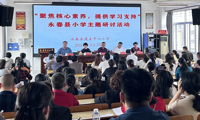 3月28日,我县小学“聚焦核心素养,提供学习支持”主题研讨活动在蓬壶中心小学举行,各中心小学、县直小学、九年一贯制学校分管教学副校长及教师代表220人参加活动。