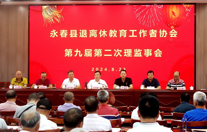 8月23日上午,永春县退离休教育工作者协会第九届第二次理事会在县教育中心六楼多功能厅召开。泉州市退教协会长毛伟雄、市退教协离退休党支部书记邱宝塔,县教育局党组书记、局长陈涌湖,县教育局三级调研员李锦江等领导出席会议。