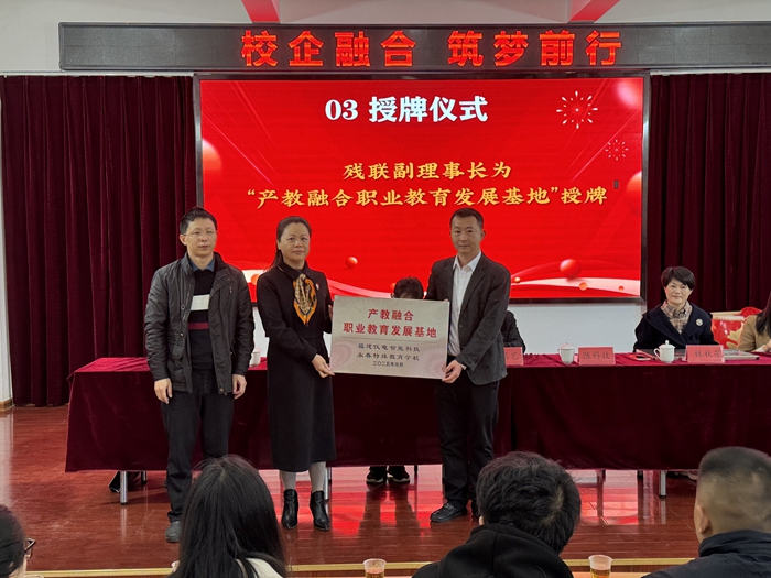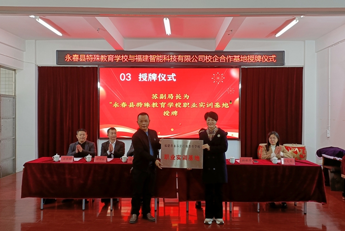 1月10,我县成立特殊教育学校职业实训基地和产教融合职业教育发展基地。县教育局、县残联、县民政局领导及6家企业代表参加。