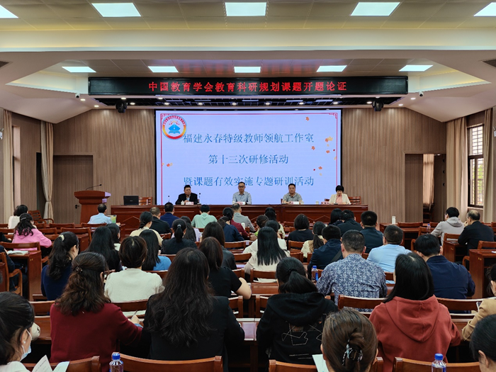 4月27日,2024年中国教育学会教育科研规划课题“大单元视域下‘语用型1+1+X’阅读教学模式的优化研究”开题论证活动暨福建永春特级教师领航工作室第十三次研修、课题有效实施专题研训活动在县教育中心六楼会议室举行。