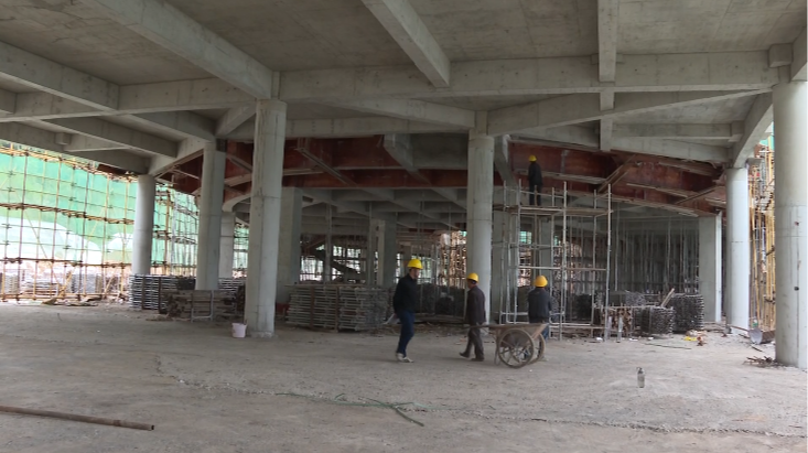 在达埔服务区A区项目施工现场,一栋集商业服务、展览展示、餐厅于一体的综合服务楼初步建成,工人们正热火朝天的忙碌着。