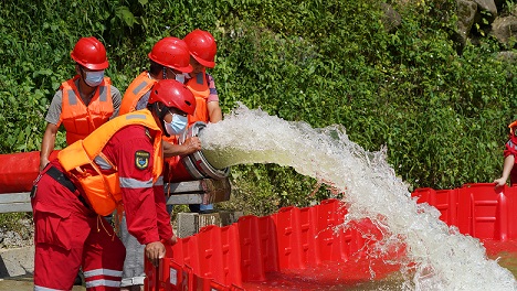 本次演练分三个部分共18个科目。一是防汛救援综合演练。开展了无人机巡查、“O”型快速救援、冲锋舟编队巡查、高陡边坡群众转移、受灾群众安置、应急供电保障、通信保障、道路应急抢修、房屋倒塌应急处置、人员应急救护、砌筑临时防洪挡板、水库启闭设备抢修、内涝应急排水等13个科目。二是应急救护知识培训。开展了气道异物梗阻、心肺复苏(溺水与心脏骤停抢救顺序)、创伤包扎与骨折固定结的学习和操作等3个科目。三是消防安全知识培训。开展液化气着火处置程序、灭火器的使用操作(油盆灭火操作)等2个科目。本次演练出动各类抢险救援队员80余人,综合运用了无人机、冲锋舟、橡皮艇、龙吸水、应急通讯车、应急发电车、生命探测仪等装备。
