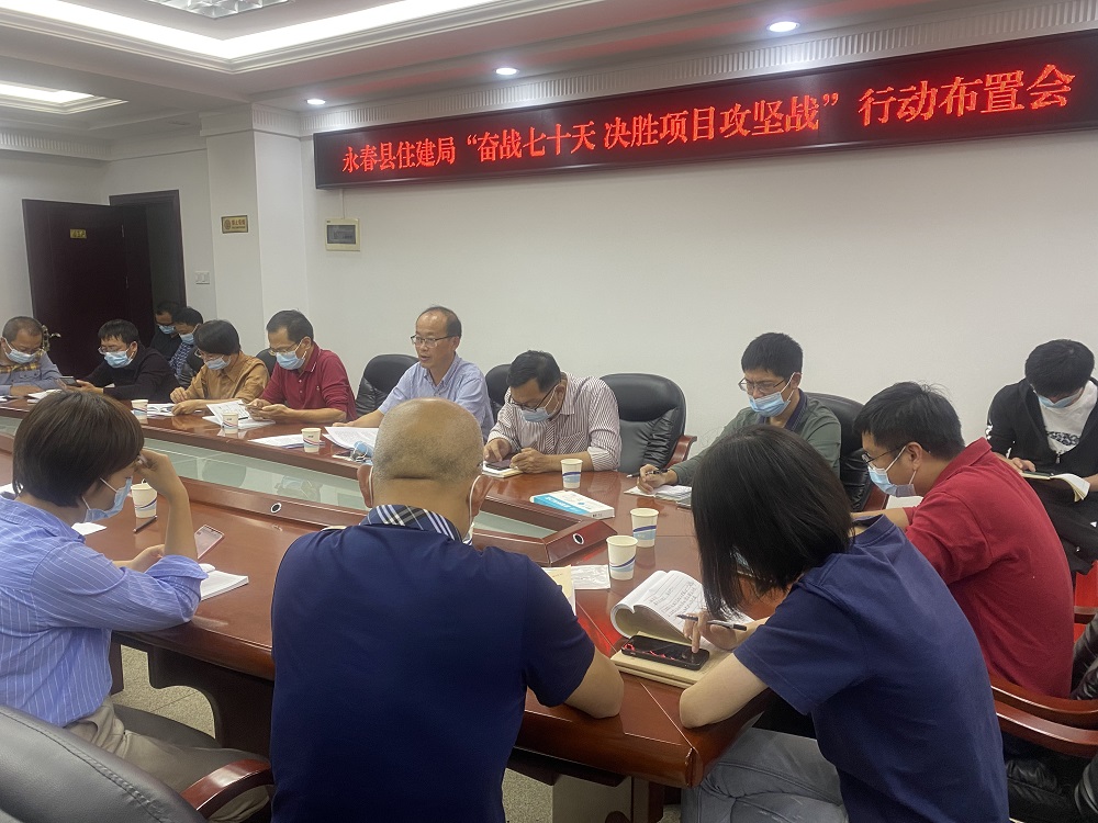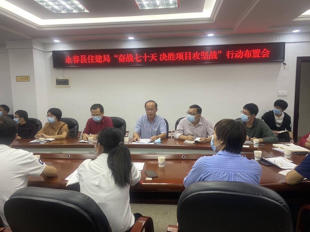 10月20日晚,永春县住建局召开“奋战七十天 决胜项目攻坚战”行动布置会。全局干部职工参加会议。