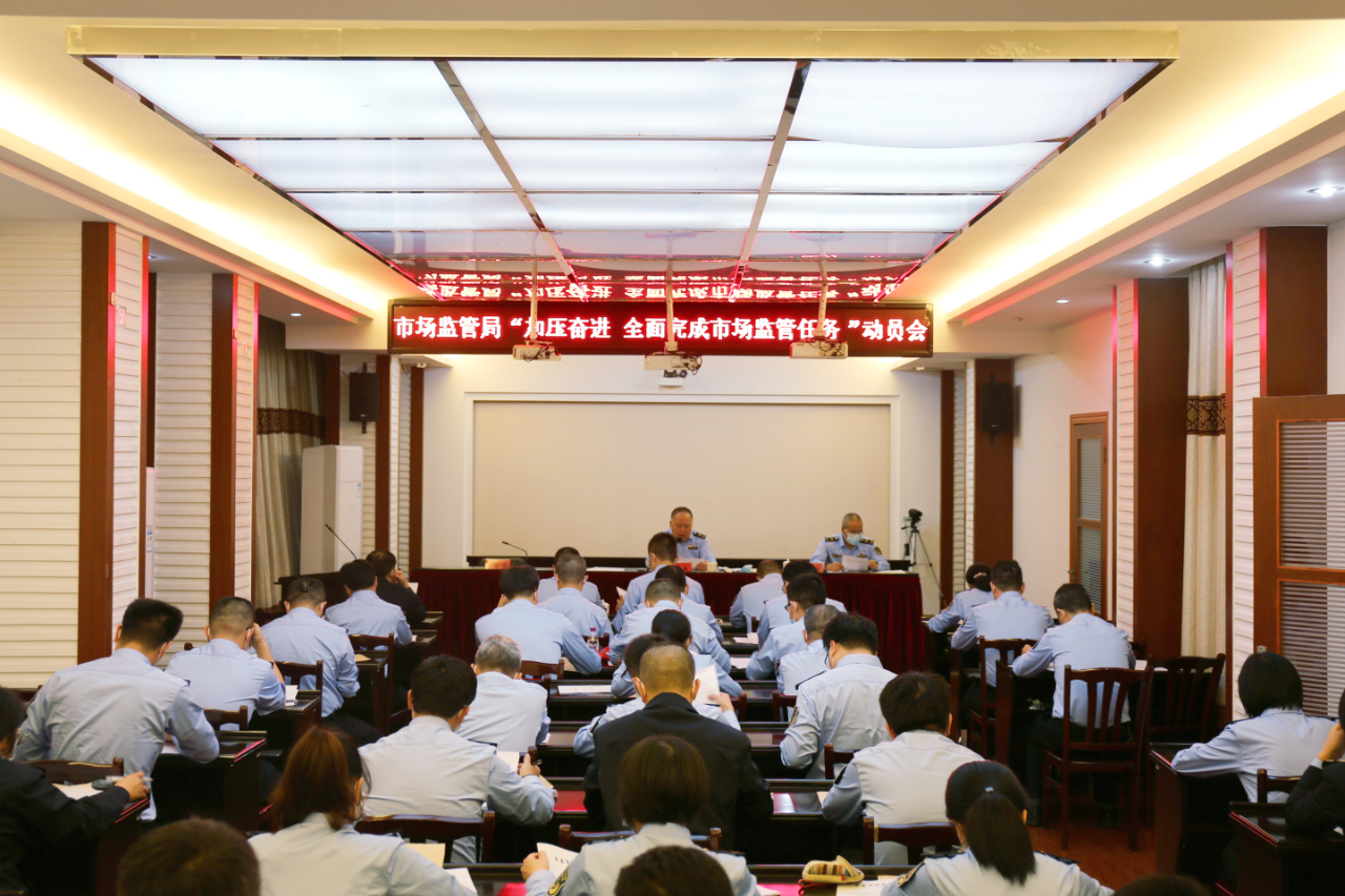 11月1日晚,县市场监管局组织召开“加压奋进 全面完成市场监管任务”动员大会,动员全体干部职工认清时间的紧迫感,调整好状态,自我加压,进一步强化措施,充分利用剩余时间全力攻坚,确保高质量完成疫情防控、安全生产、绩效考核、招商引资等全年各项工作任务。局党组成员,各股室、基层所、直属单位负责人以及综合执法大队中队长共47人参加会议,局党组书记、局长郭景良主持会议。