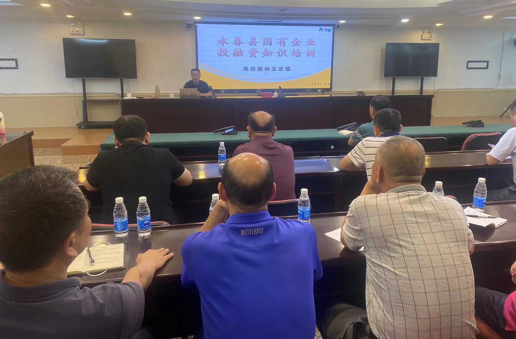 为进一步落实深化国有企业改革工作部署和要求,全面提高国有企业干部职工政策理论和业务水平,根据县委“全面提振精气神?奋勇争先展新貌”行动部署要求,经县政府批准,6月20日县国资中心牵头举办县国有企业投融资知识专题培训讲座。县招商办、招商服务中心全体人员,县工业园区管委会招商小组成员,县财政局、国资中心、金融办分管负责同志及业务负责人,县城建集团、农文旅集团各办公室负责人及所属子公司执行董事、财务负责人,两大集团2023年新入职人员,各金融机构分管信贷人员共计100多人参加培训。