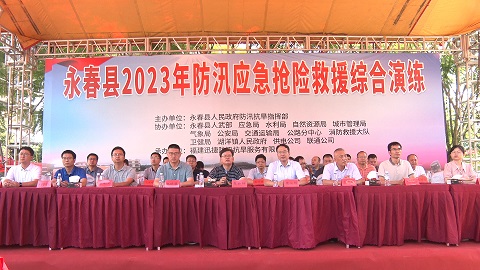 7月7日,永春县在湖洋镇美莲村开展2023年防汛应急抢险救援综合演练活动,旨在进一步增强广大干部群众防汛抗灾意识,切实提高防汛抗洪抢险救援能力。