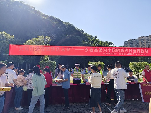 10月13日上午,由永春县减灾委办公室牵头组织,桃城镇政府承办,县应急管理局、科技局、自然资源局、住建局、林业局、水利局、文体旅游局、城市管理局、地震办、消防大队、生态环境局、气象局、人保财险、泉运永春公司、高速交警六大队等成员单位联合在留安山公园开展防灾减灾宣传活动,县减灾办黄聪胜副主任出席活动。活动中通过悬挂标语、设立咨询台、发放宣传单、制作宣传漫画等多种形式向群众宣传防灾减灾知识。