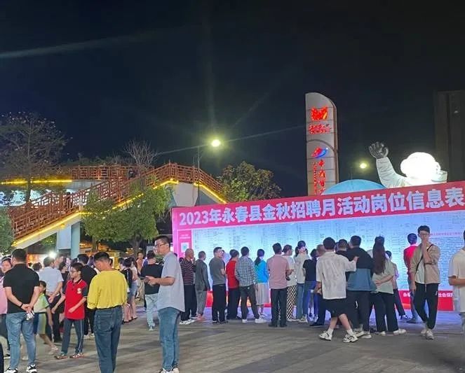 为贯彻中央、省、市关于稳就业和促进民营经济发展壮大的决策部署,落实高校毕业生“涌泉”行动,搭建对接平台,帮助各类企业招工稳岗,支持各类求职者就业创业,县人社局、石鼓镇人民政府协同退役军人事务局、总工会、团县委、妇联、工商联和残联于10月13日晚举办主题为“就在金秋·职面未来”的“2023年金秋招聘月暨就业创业政策宣传活动”和“2023年永春县大中城市联合招聘高校毕业生专场活动”。