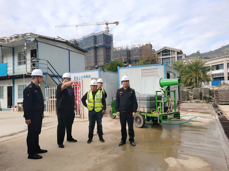 根据市住建局统一部署,我局已建立扬尘监控平台,城区59个在建项目已安装扬尘监测设备并接入扬尘监控平台。我局质安中心结合“双随机”检查和日常巡查以及与生态环境局、城市管理局联合巡查,对各在建工地扬尘监控设备的安装情况及扬尘控制措施进行检查,发出责令整改通知书55份。根据《泉州市住房和城乡建设局关于切实落实建筑工程施工扬尘整治工作的通知》对经2次通知整改未落实的两个项目分别予以动态监管记分5分的处罚,目前现场存在的问题已经进行整改。