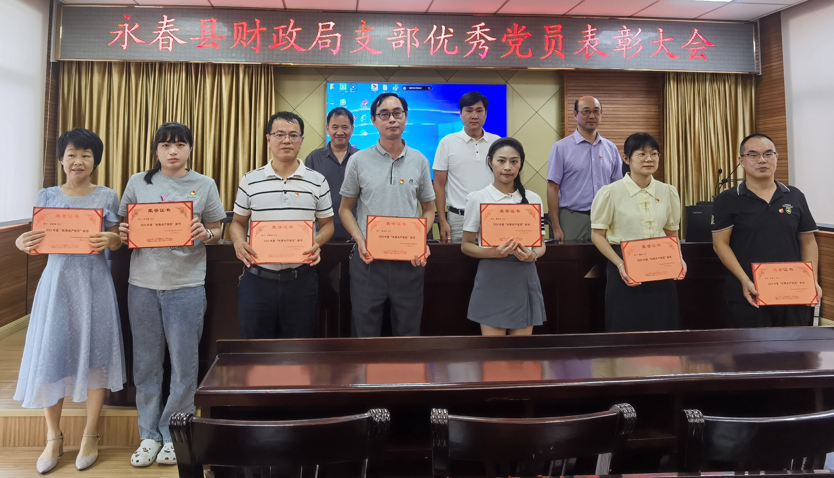 专题讲座结束后,刘兴宝副局长宣读《中共永春县财政局支部委员会关于表彰2023年度局机关事业单位“优秀党员”的通知》,并对15名优秀共产党员进行表彰。