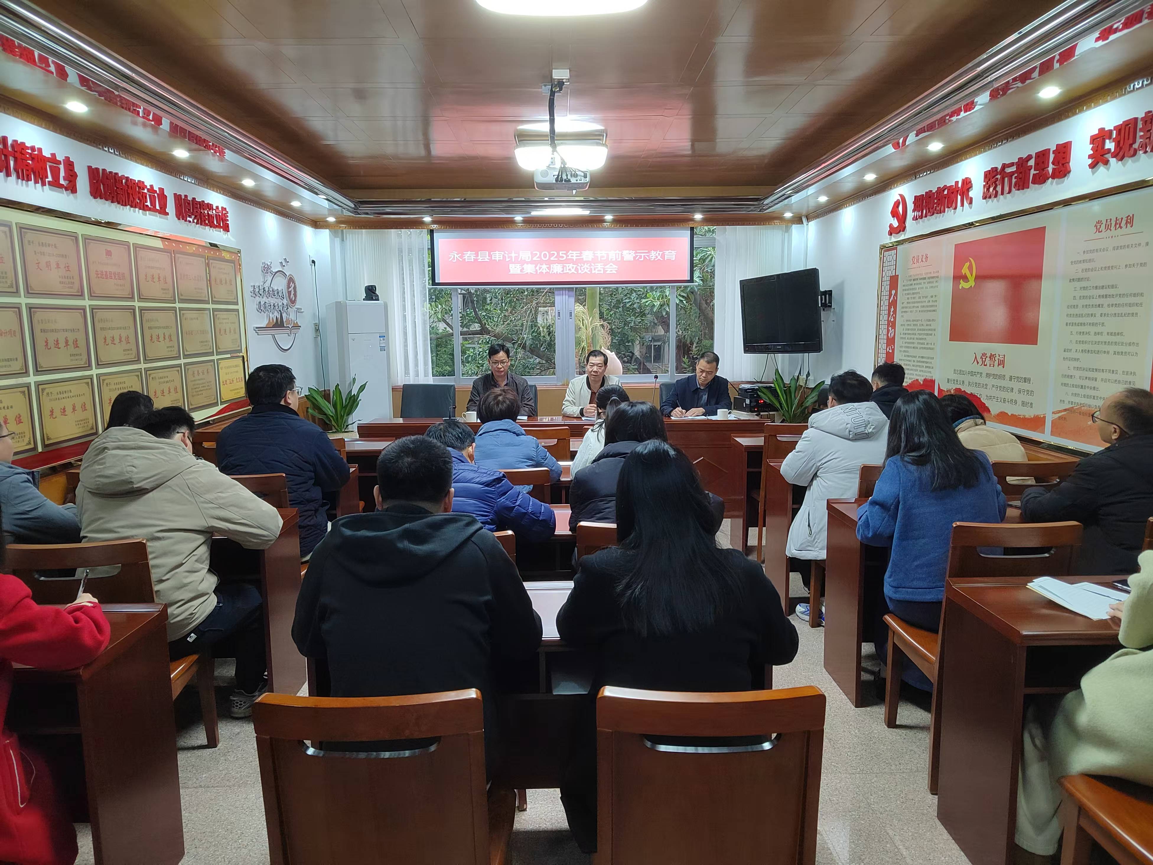 2025年春节将至,为锲而不舍落实中央八项规定精神,深化作风建设,进一步营造风清气正的节日氛围,永春县审计局开展节前集体廉政谈话活动。