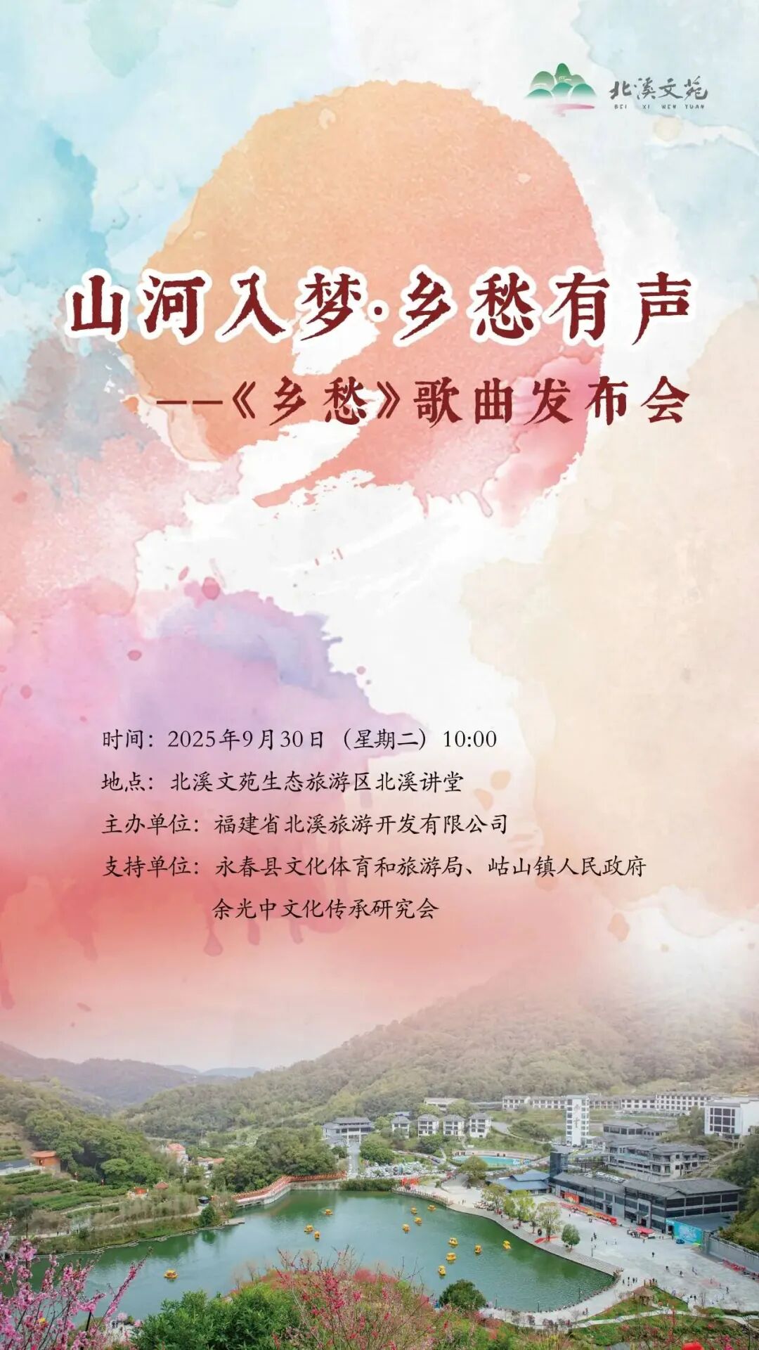 诚邀您共聚永春北溪文苑:在北溪文苑故乡山水间等《乡愁》响起,在古榕树下和两岸同胞话团圆,亲耳听这片土地上孕育出的旋律,把乡愁唱到心里最软的地方。2025年9月30日,我们在北溪文苑,不见不散!