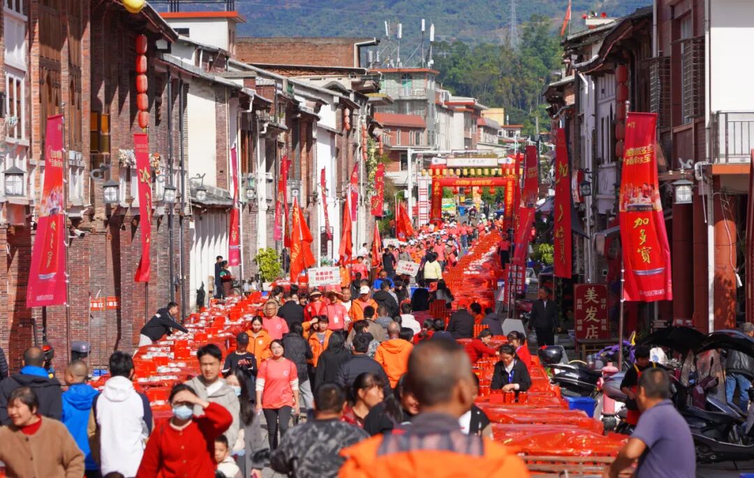 徒步环节结束后,活动为22支荣获“优秀组织奖”的协会及团队颁奖。上千名参与者齐聚海丝原点五里古街,共同品尝包括老醋猪脚、金桔馒头、石鼓白鸭汤等永春本地特色美食。这些美食选自融合永春地方物产与魁星文化的“永春魁星宴”,以美食为载体,生动诠释永春风物之美与文化之韵,让全国各地的徒步参与者在领略永春风味的同时,切身感受泉州世界美食之都的丰富内涵与多元魅力。