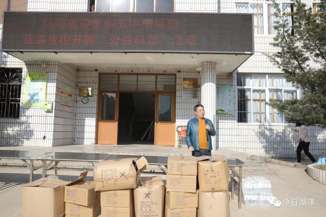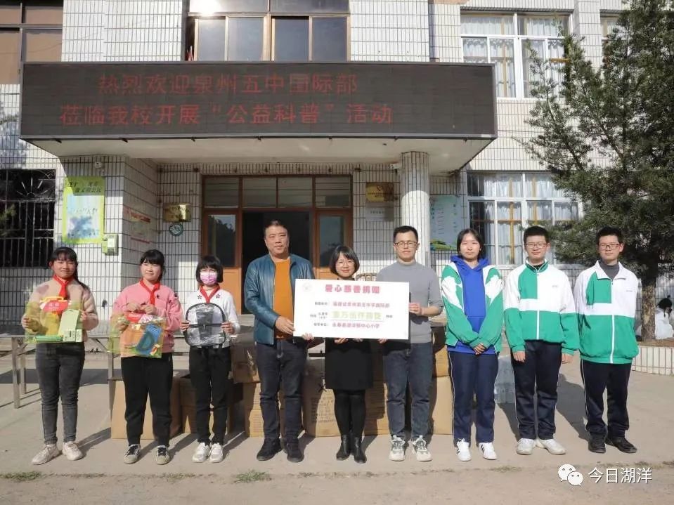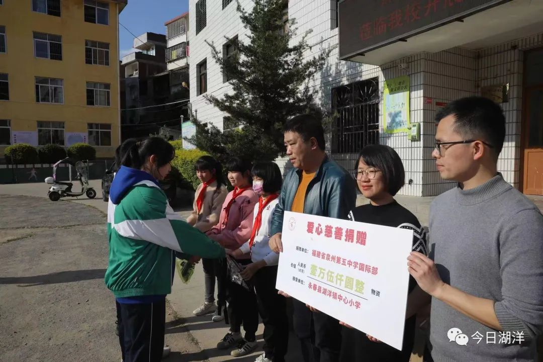 泉州五中国际部的同学们来到湖洋中心小学,集资捐赠了学习用品,并捐资壹万伍仟元整,以此鼓励湖洋中心小学的学生们好好学习。