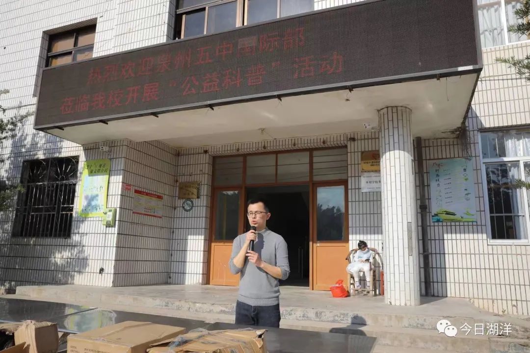 湖洋中心小学校长陈振益对泉州五中国际部的老师及同学表示欢迎和感谢。